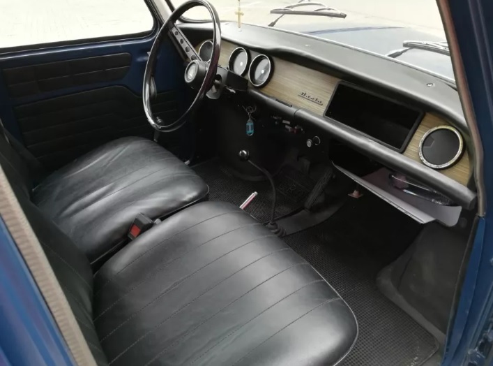 Maşina de faţă se vede că a aparţinut unui porprietar care a iubit-o. Este foarte bine întreţinută. A fost produsă în anul 1971, are motor de 1,100 cm³, iar pe kilometraj scrie 10.238 de km.