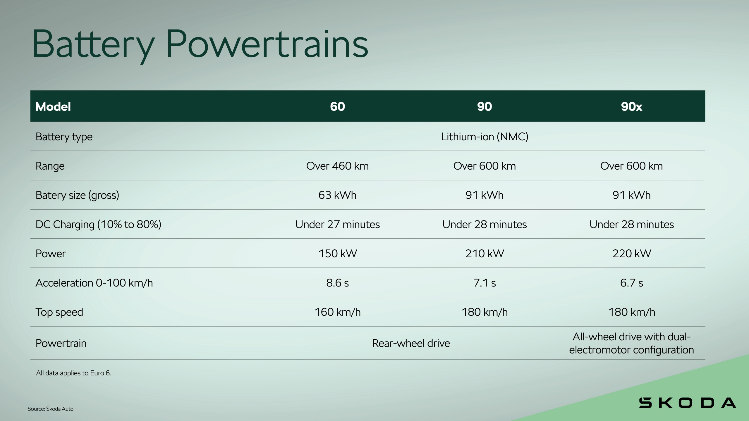 Clienții vor putea alege dintre trei variante de motorizare: 60, 90 și 90x. Ele oferă puteri cuprinse între 204 și 300 de cai putere. Variantele 90 și 90x oferă o autonomie de peste 600 de kilometri și pot fi încărcate de la 10 la 80% din capacitate prin încărcare rapidă DC în doar 28 de minute. Varianta 60 realizează aceeași încărcare în doar 27 de minute.