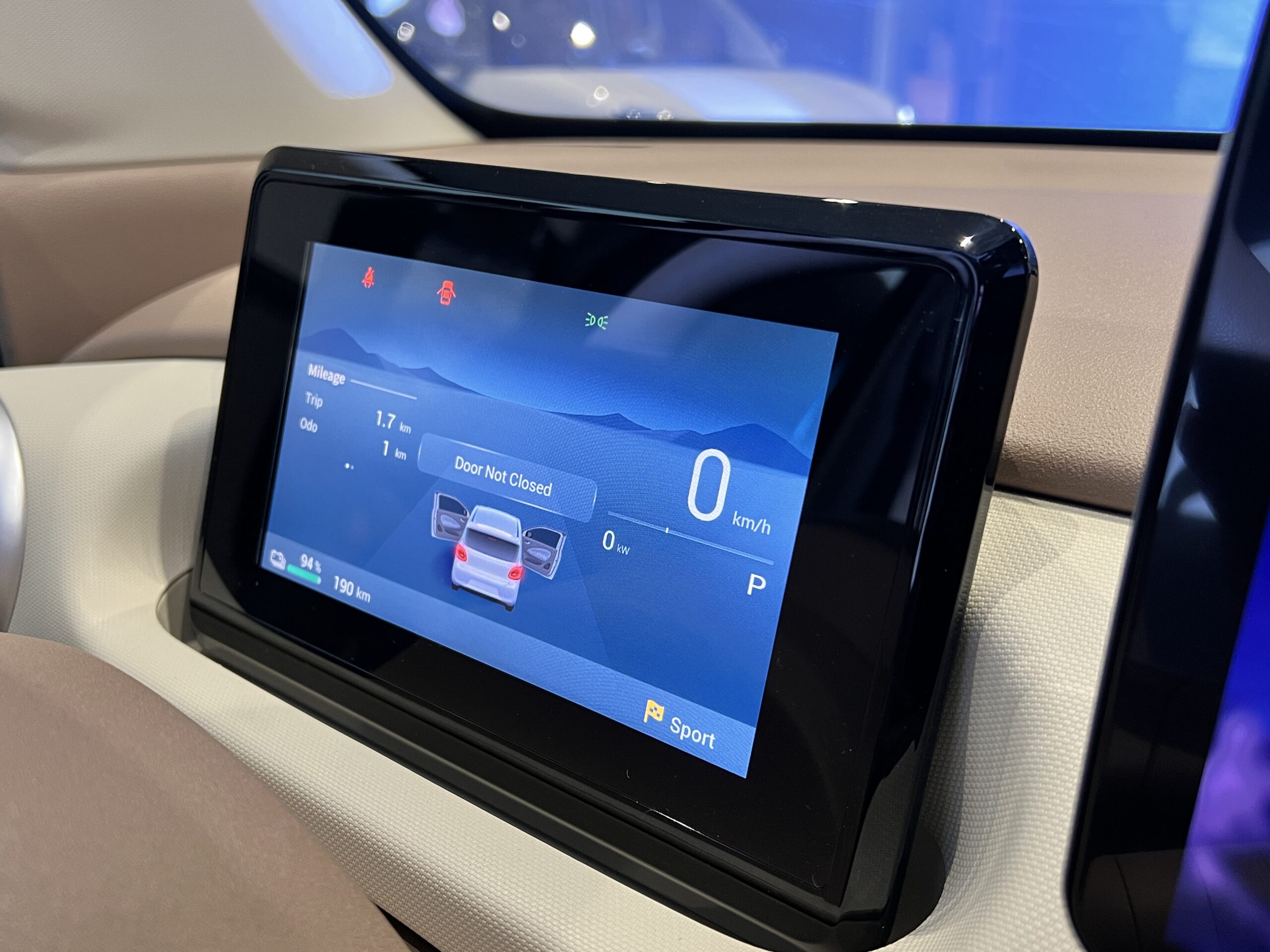 Pe partea de tehnologie, mașina de oraș vine și cu frână de mână electrică, dar și Auto Hold. Totodată, sunt incluse și patru geamuri electrice. Tot la acest capitol, instrumentarul de bord digital este destul de rudimentar. El afișează doar viteza, starea de încărcare, autonomia și modurile de condus.