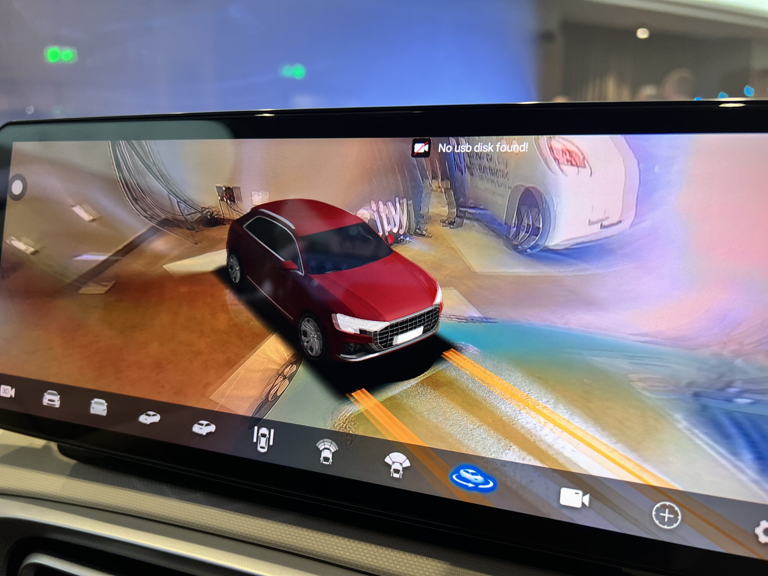 Interiorul dispune de două ecrane, unul pentru instrumentarul de bord și unul pentru sistemul de infotainment, de 10,3 inch. Cel din urmă vine cu Apple CarPlay și Android Auto, sisteme care vor fi mai utilizate decât cel nativ. Totuși, el are un format foarte wide, iar acesta înglobează și navigația și sistemul de camere de 360°.