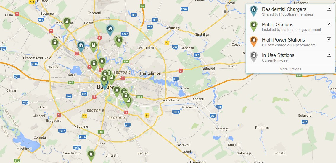 Potrivit hărţii, în Bucureşti şi împrejurimi există 19 staţii de încărcare