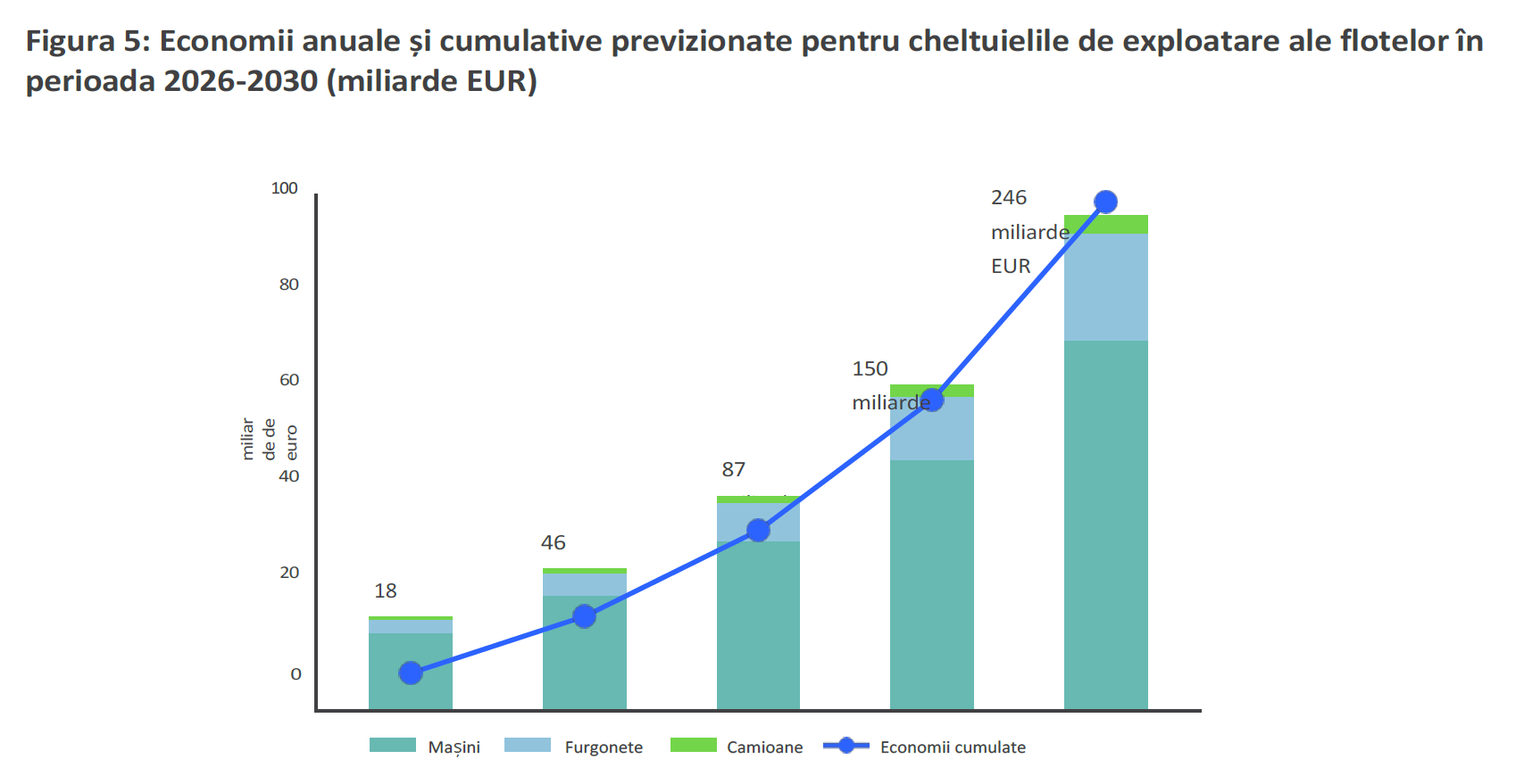 Utilitarele electrice ușoare ar putea reduce costurile cu carburanții cu până la 60%, iar cele cu întreținerea ar putea scădea cu până la 30%. Totalul economiilor s-ar putea ridica la 246 de miliarde de euro, cea mai mare parte fiind din zona autoturismelor.
