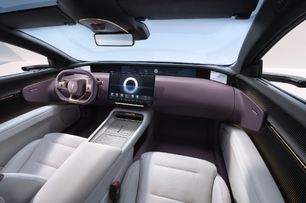 Habitaclul este dominat de tehnologie. Un ecran panoramic de 35,4 inch traversează întreaga planșă de bord, completat de display-uri dedicate camerelor video și de un ecran central pentru sistemul multimedia. Acoperișul din sticlă electrocromă permite trecerea rapidă de la transparență la opacitate, în funcție de preferințele ocupanților.