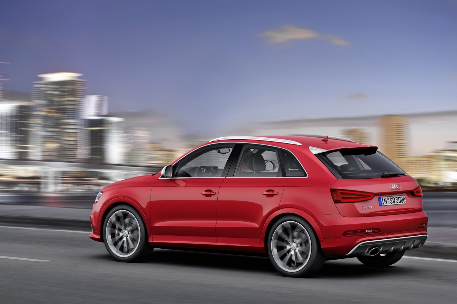 Audi RS Q3 cântăreşte 1.730 kg şi vine cu o serie de tuşe stilistice care au rolul de a-l diferenţia de un Q3 standard, precum jante de 19 sau 20 de inci, bare longitudinale din aluminiu mat pe acoperiş, o grilă a radiatorului vopsită în negru lucios, spoiler faţă RS, un difuzor de aer în bara de protecţie spate şi un eleron pe capota portbagajului.