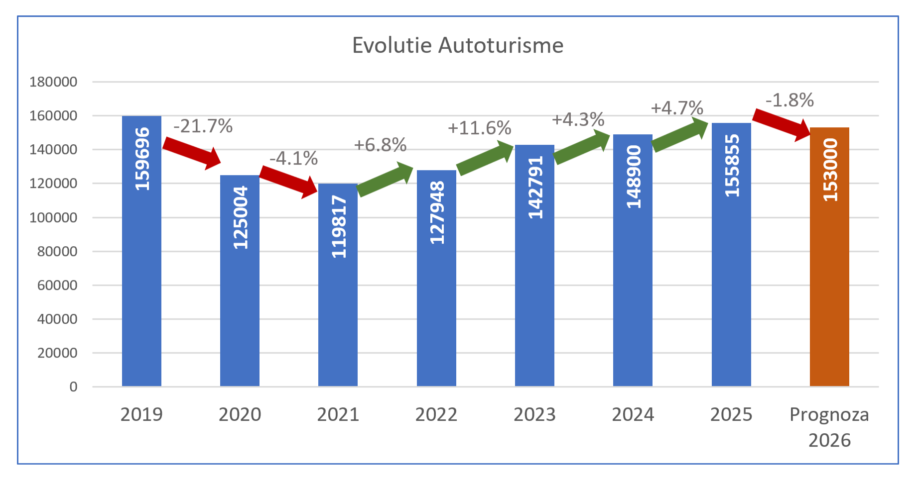Dan Vardie a remarcat, din nou, că piața auto nu și-a revenit înainte de perioada pre-pandemică. În 2019, s-au comercializat aproape 160.000 de autoturisme, pe când în 2025 s-au vândut doar 155.855 de mașini. Predicțiile APIA pentru acest an sunt în continuare pesimiste pentru revenirea la nivelul din 2019.