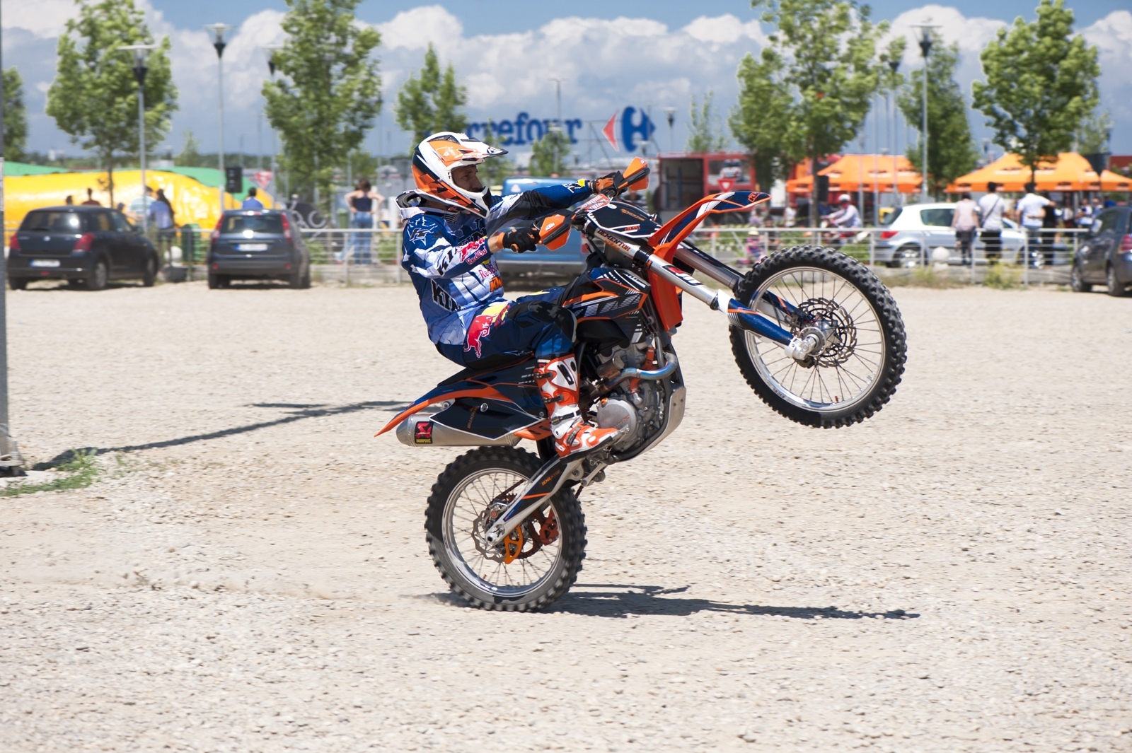 Parcarea centrului comercial se transformă într-un adevărat circuit: maşini de teren şi motociclete KTM se vor întrece în demonstraţii de off-road driving, spre deliciul iubitorilor de adrenalină. În acelaşi timp, vizitatorii vor ocupa un loc în tribunele Etapei I a Campionatului Naţional de Îndemânare Auto, un spectacol pe patru roţi cu maşini modificate.