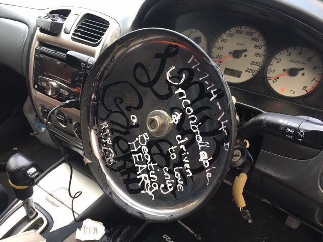 Deşi tigaia fusese personalizată cu un marker alb, poliţiştii nu au fost impresionaţi şi i-au aplicat bărbatului o serie de amenzi pentru conducerea unei maşini avariate, conducere fără numere de înmatriculare şi încălcarea cauţiunii, urmând să fie prezentat instanţei în luna octombrie.