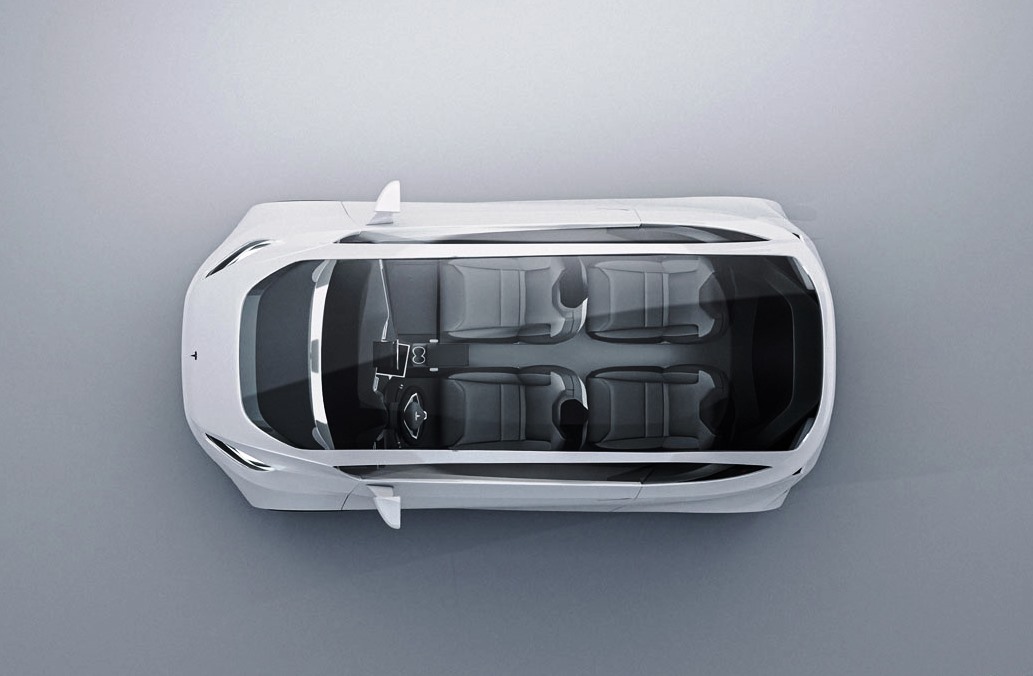 În viziunea celor de la The Clunker Junker, viitorul Tesla Mini Car va avea plafon panoramic din sticlă electrocromic (n.n. – electrocromia este fenomenul de schimbare a culorii sau a opacității sticlei în funcție de temperatură).