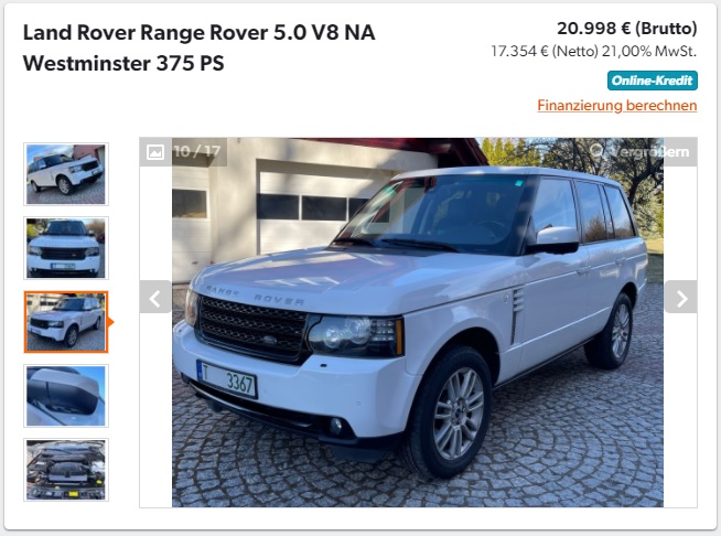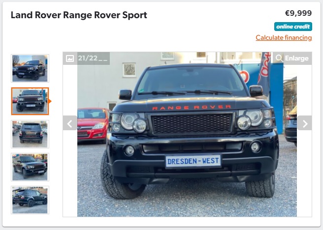 Înmatriculat în anul 2015 și ajuns momentan la un rulaj de 202,357 km, acest Range Rover Sport poate fi cumpărat cu suma de 9.999 EURO. Este cel mai ieftin exemplar dintre cele găsit de noi pentru acest top.