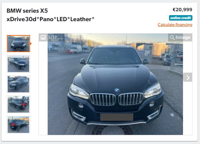 SUV-ul bavarez din anunț a ajuns la un rulaj de 290,199 km. Mașina a fost pentru prima dată înregistrată în anul 2014. Modelul dispune de un motor pe motorină de 3.0 litri care produce 258 de CP, cutie de viteze automată și tracțiune integrală.