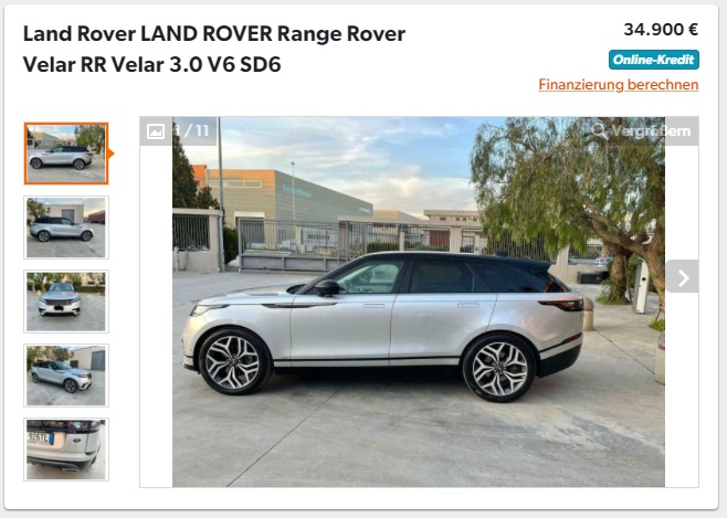 Proprietarul acestui Range Rover Velar a decis să-l vândă după 70.000 km. Mașina a fost înmatriculată în anul 2015. SUV-ul britanic are sub capotă un motor pe motorină (V6 capacitate 3.0 litri) care produce 300 de CP. Mașina arată impresionant atât la exterior, cât și la interior. Dacă nu ne credeți puteți verifica anunțul aici.