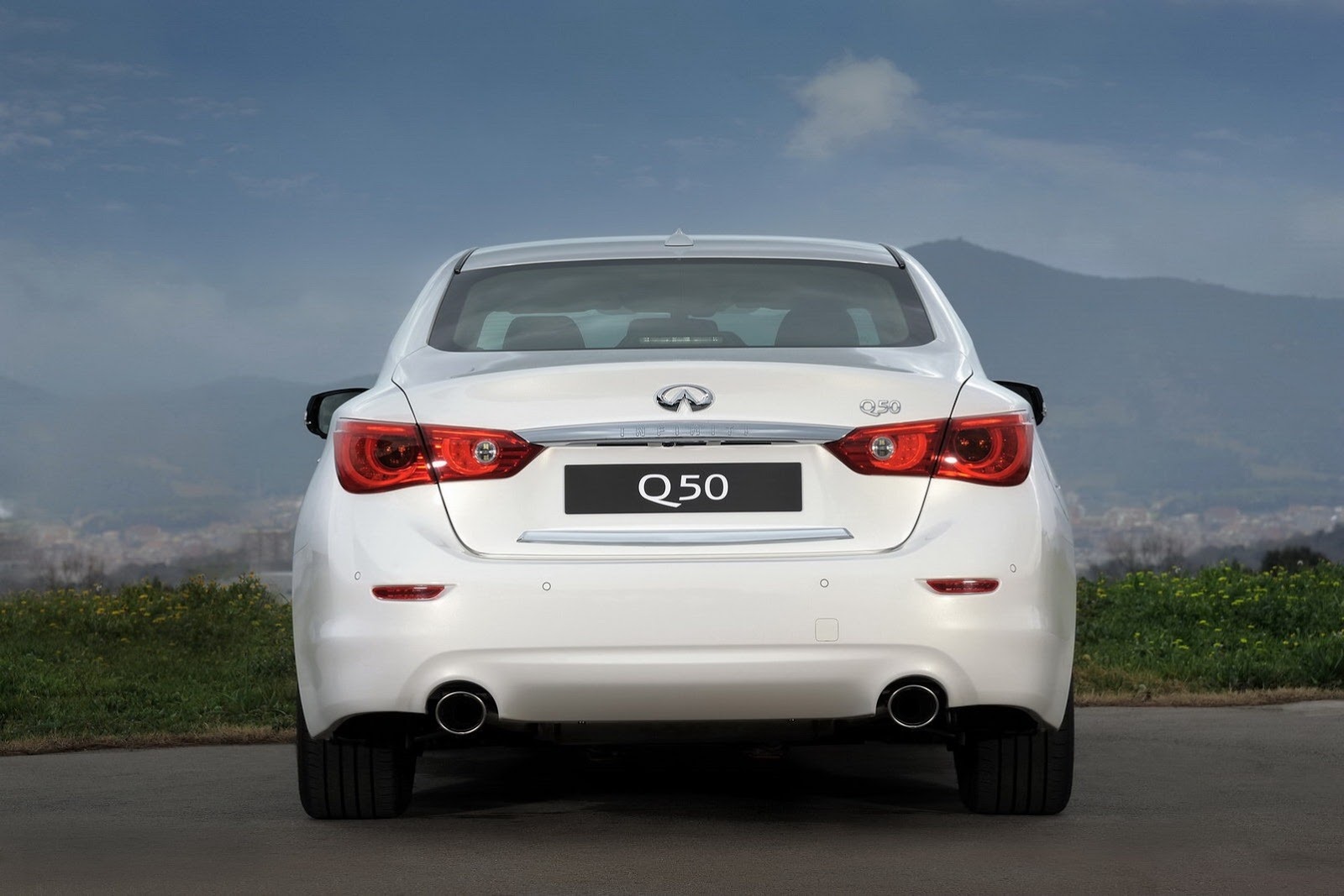 Pe piaţa europeană, Infiniti Q50 va fi oferit şi în varianta hibridă de 359 CP, care promite un demaraj 0-100 km/h în doar 5,5 secunde şi un consum mediu de 6,2 litri/100 km (emisii CO2 de 145 g/km). Q50 Hybrid va fi oferit doar în versiunea AWD, cu tracţiune integrală, în timp ce versiunea diesel va fi disponibilă doar cu tracţiune spate.
