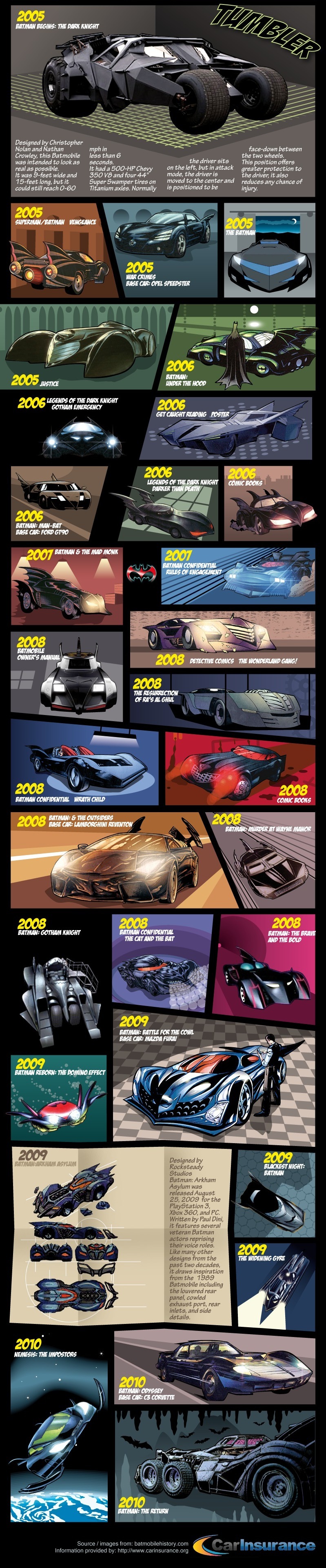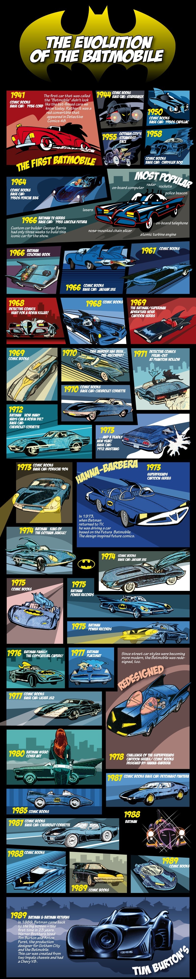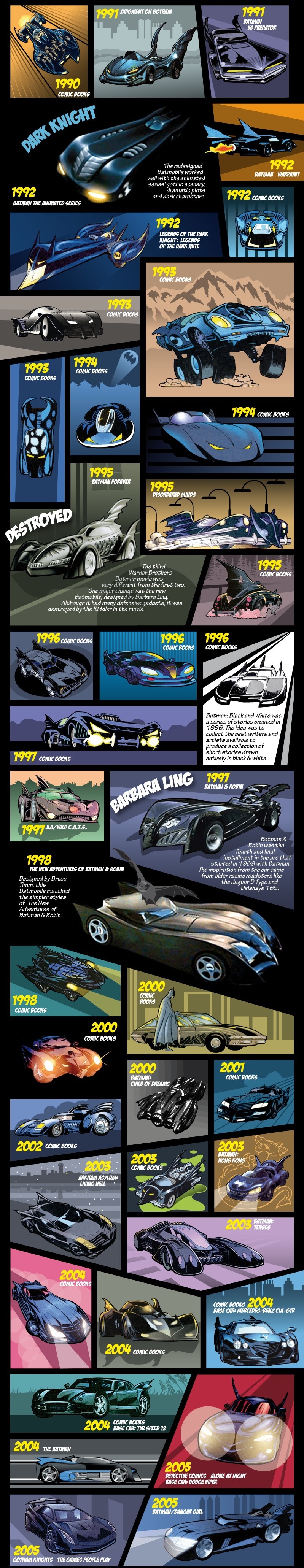 De atunci şi până acum, Batman a condus zeci de maşini făcute la comandă (doar e un om foarte bogat, nu?), fie în serialul de televiziune, fie în filmele de cinema, fie în benzile desenate.