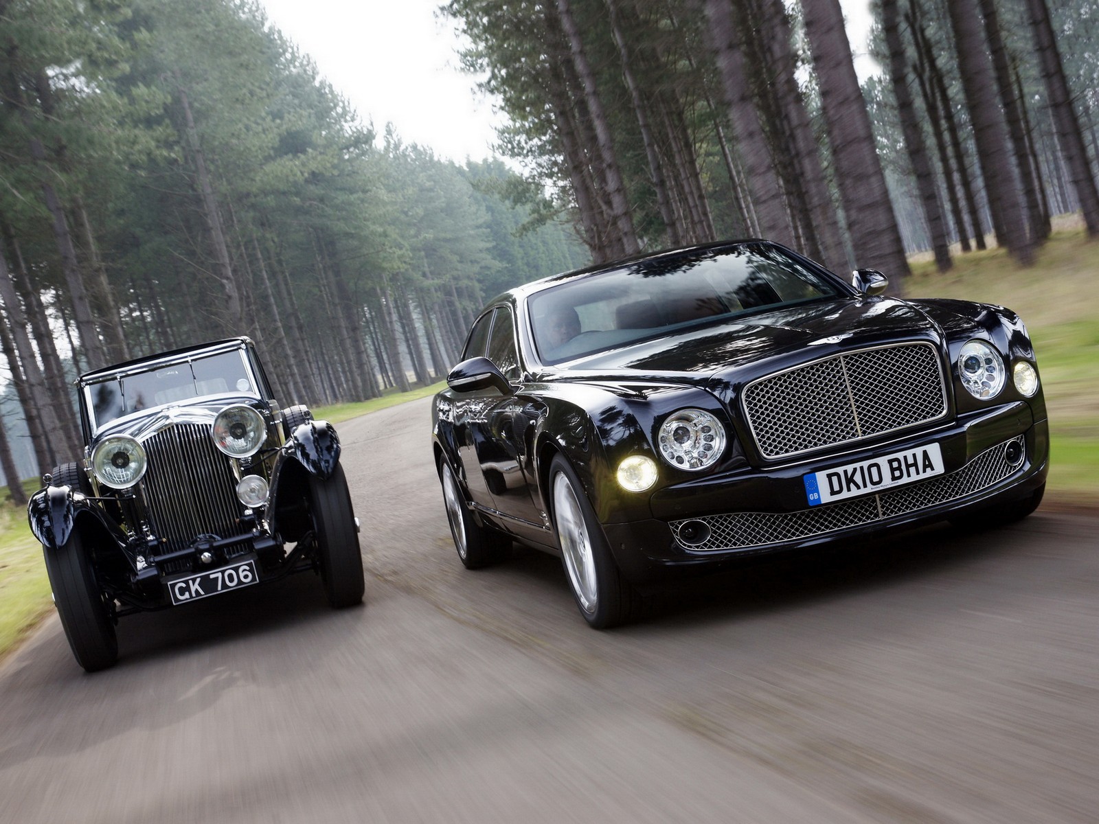 Un Bentley Mulsanne, alături de un 8-Litre (cel din imagine a fost chiar maşina personală a lui Walter Owen Bentley).