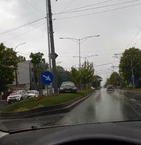 Ca să ajungi cu mașina pe acest scuar este destul de greu, dar totuși i s-a întâmplat unui șofer. Zilele trecute a apărut pe Facebook un clip în care poate fi văzută o mașină urcată pe acea zonă verde, în zona Iuliu Maniu-Master, sens spre Piața Gorjului.