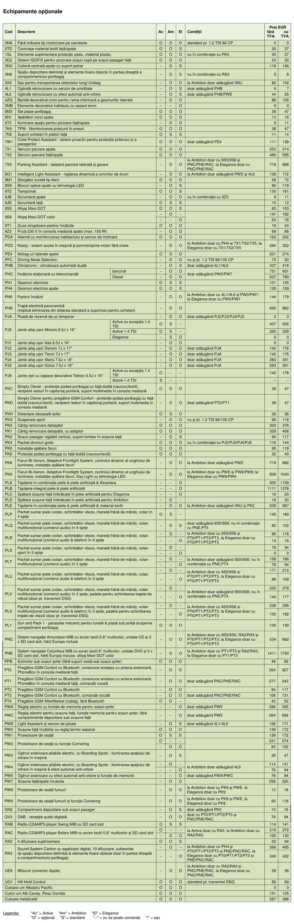 În continuare, lista de dotări opţionale pentru Skoda Octavia: