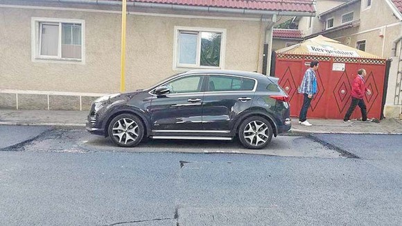 O stradă din Braşov a fost asfaltată într-un veritabil stil românesc. Motivul a fost o maşină cu numere de Bucureşti parcată aiurea. Proprietarul autovehiculului a ignorat afişele de pe stâlpi care anunţau că urmează asfaltarea străzii.