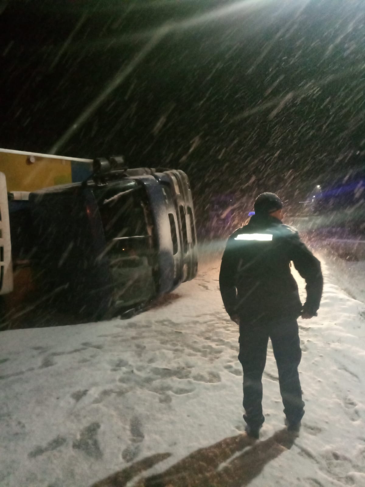 ”În câteva minute colegii noștri au oprit și au alertat serviciile de urgență iar până la sosirea Poliției și a echipajului SMURD, cu ajutorul unei scări de la o autospecială de deszăpezire care trecea prin zonă, un jandarm a ajutat șoferul să iasă din cabina tirului răsturnat, iar celălalt a semnalizat zona cu triunghiuri reflectorizante și a dirijat mașinile din trafic pentru a nu se crea un blocaj”, se arată în comunicatul de presă al Jandarmeriei Bacău.