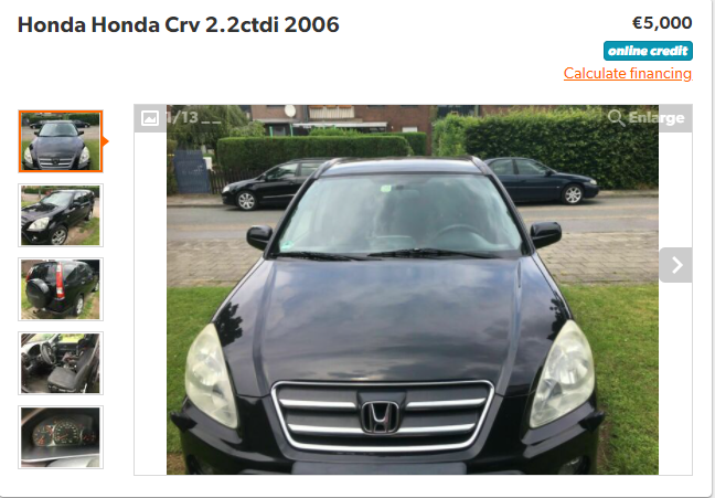 Continuăm topul nostru cu modelul CRV de la Honda. Modelul producătorului nipon vândut pe Mobile.de beneficiază de un motor de 2,2 litri diesel cuplat la o cutie de viteze manuală.