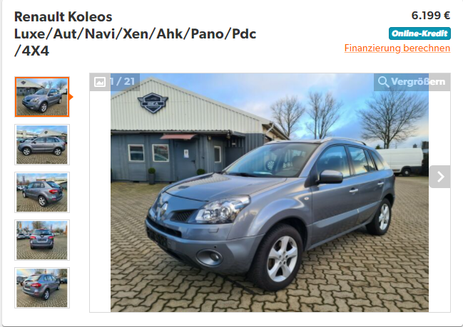 La puțin peste 6.000 de euro găsim un Renault Koleos. Modelul producătorului francez a avut prima înmatriculare în 2009 și are rulajul de peste 224.000 de kilometri.