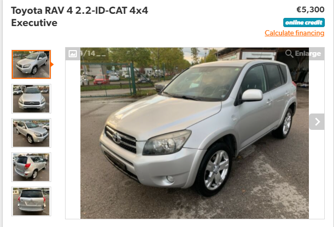 Toyota este un alt producător destul de apreciat în România, iar RAV 4 este un model popular în Europa. Acest vehicul găsit pe Mobile.de este echipat cu un motor de 2,2 litri diesel cuplat la o cutie de viteze manuală și care poate dezvolta până la 177 de cai putere.