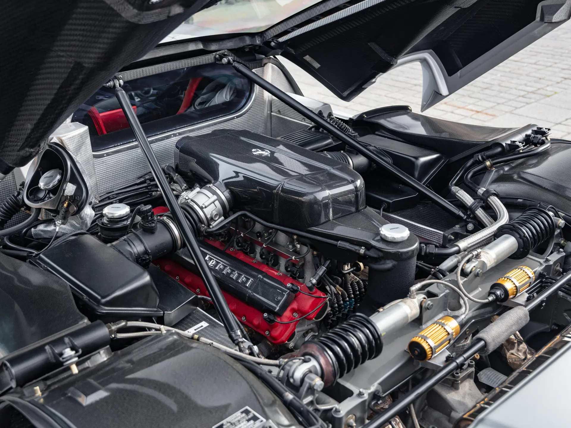 Pe lângă culoarea specială Argento Nürburgring, Ferrari-ul scos la vânzare de casa de licitații este și unul din singurele cinci modele cu un interior din piele Rosso, dar și singurul Enzo argintiu livrat în Marea Britanie.