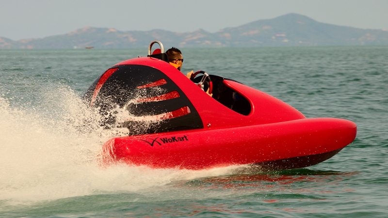 Mai mult, kartul acvatic dispune de un volan şi un scaun sport, iar acceleraţia este controlată clasic, cu ajutorul unei pedale, pentru o experienţă cât mai apropiată de cea a condusului unui automobil.
