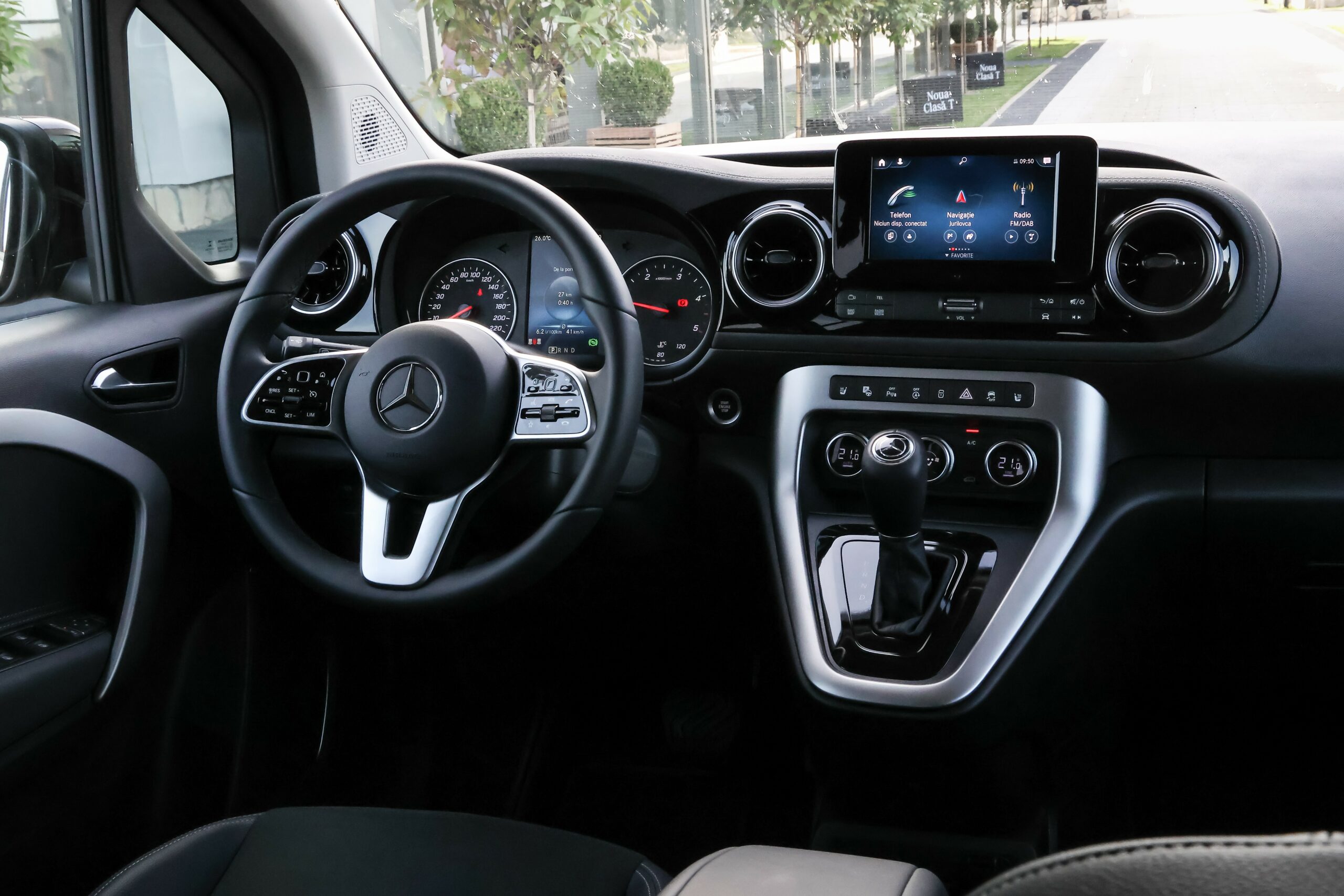 La Clasa T interfața intuitivă de navigare este afișată prin intermediul unui ecran tactil de 7 inchi și este flancat de un alt ecran color de 5,5 inchi, amplasat printre indicatoarele analogice. Nu este în întregime digital, dar chiar și pe un ecran vertical de mici dimensiuni, are exact aceleași funcții ca și cele de pe gama sedan sau SUV, inclusiv reproducerea navigației.