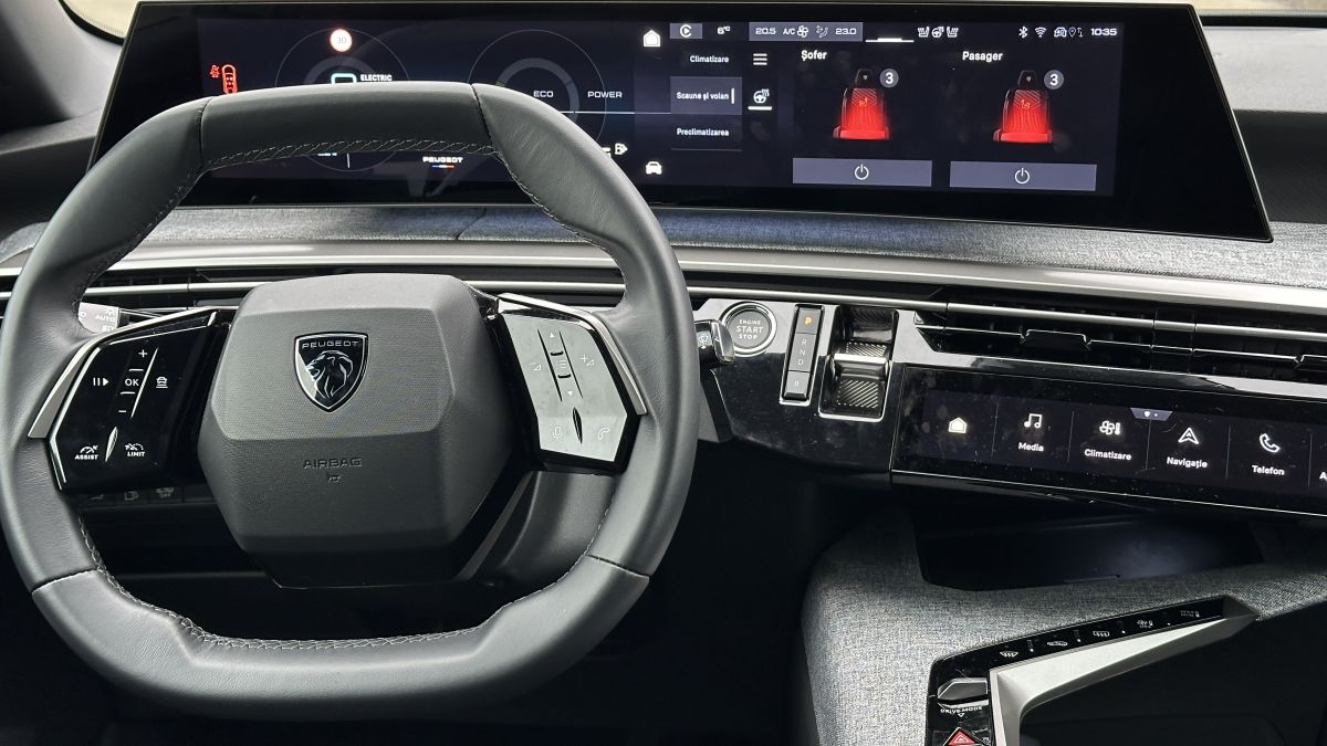 Un element care merită menționat separat este calitatea foarte bună a ecranelor, un capitol la care noul Peugeot 3008 face un pas clar înainte față de generația anterioară. Panoul panoramic de 21 de inci are o rezoluție ridicată, culori bine calibrate și un contrast excelent, lizibil atât ziua, cât și noaptea, fără reflexii deranjante. Grafica este modernă, aerisită și coerentă, iar animațiile sunt fluide, fără întârzieri sau blocaje sesizabile în utilizarea zilnică.