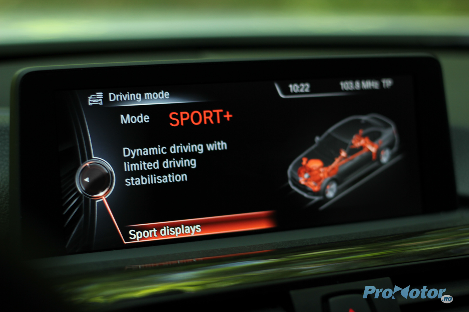 Modul Comfort e destinat condusului zilnic, în timp ce modul Sport întăreşte direcţia şi oferă un răspuns imediat al motorului la apăsarea pedalei de acceleraţie. În Sport Plus este dezactivat parţial sistemul electronic de control al tracţiunii, ceea ce înseamnă că te poţi juca puţin pe viraje, însă dacă maşina detectează că te distrezi prea mult, te dojeneşte cu reactivarea totală a controlului electronic al tracţiunii, iar asta duce inevitabil la revenirea pe trasa normală.