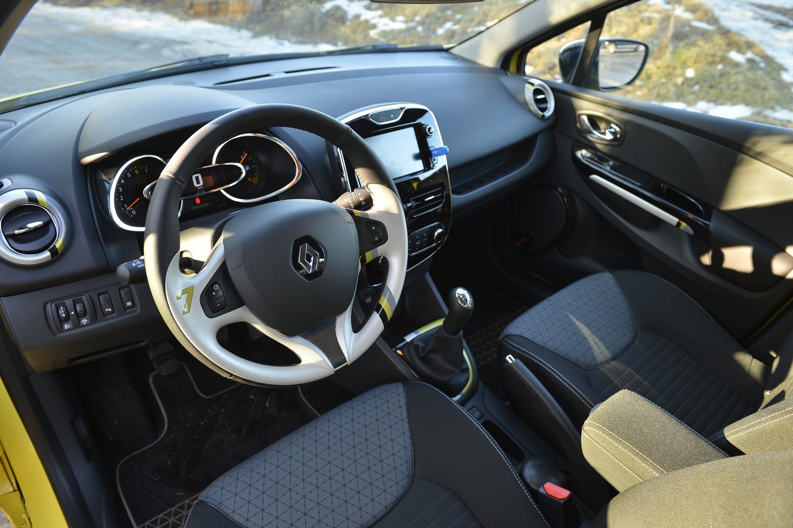 Singurul detaliu nou adus în exterior de modelul de faţă comparativ cu versiunea diesel testată anul trecut este pachetul opţional Sport de personalizare completă, oferit doar pentru nuanţa galbenă specială de vopsea opacă Jaune Éclair. Preţul pachetului este de 400 de euro, acesta fiind disponibil doar cu nivelul de echipare Dynamique.